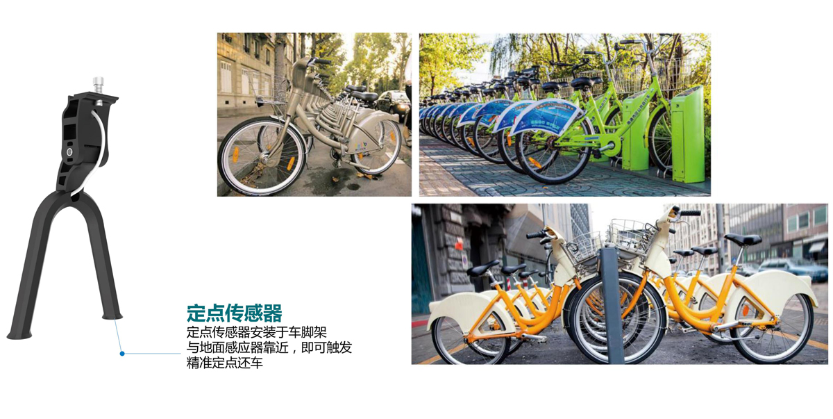 在定制脚架的基础上,内嵌宇维自研的站点停放传感设备,通过将脚架定位放置在路道上的站点传感装置上,可判定定点还车成功,管理后台可实时了解每个站点的车位停放情况,空余情况。